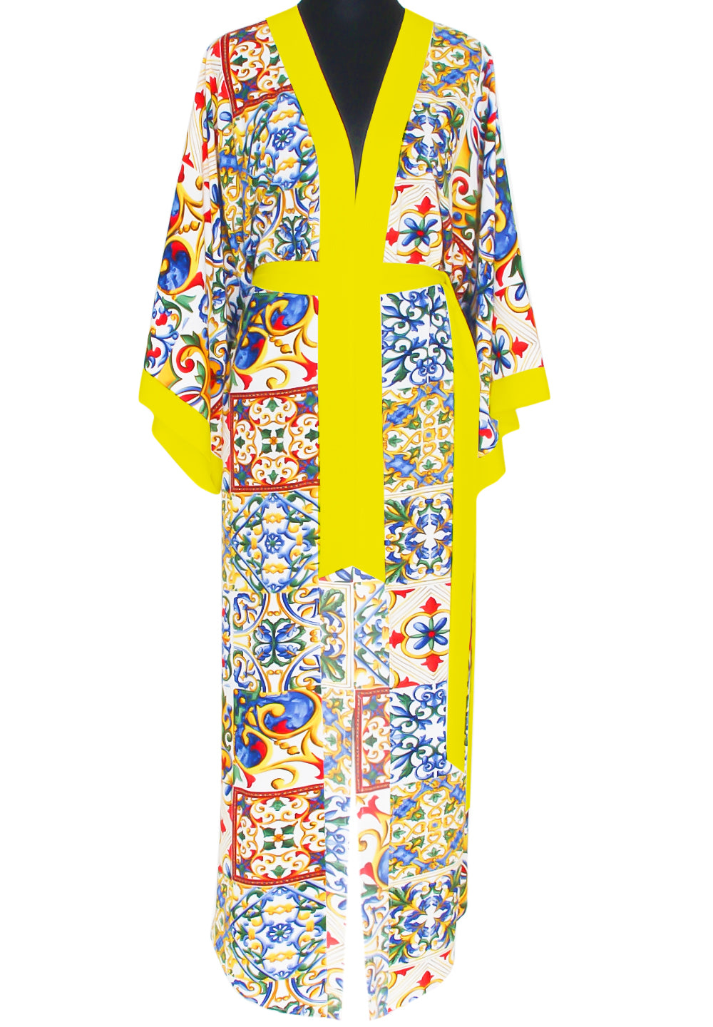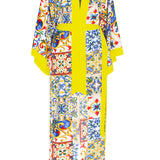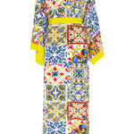 Maxi Split Kaftan - print from vibrant Siciliana collection inspired by colorful Italian majolica, with yellow finish.