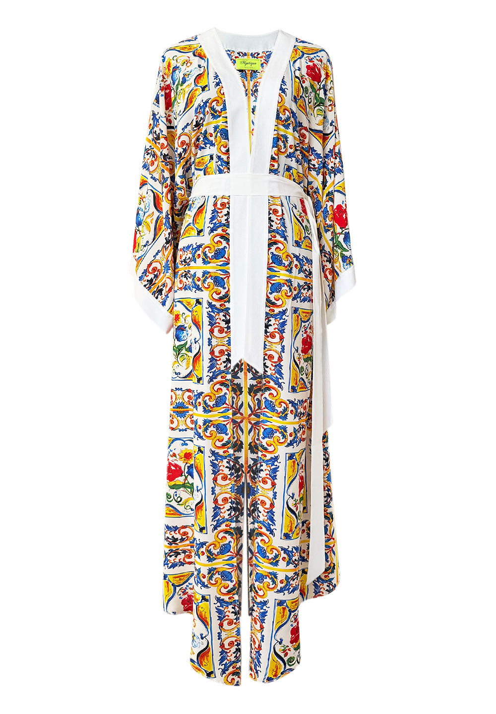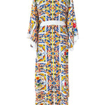 Maxi Split Kaftan - print from vibrant Siciliana collection inspired by colorful Italian majolica, with off-white finish.