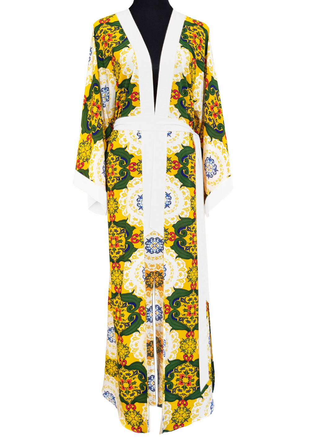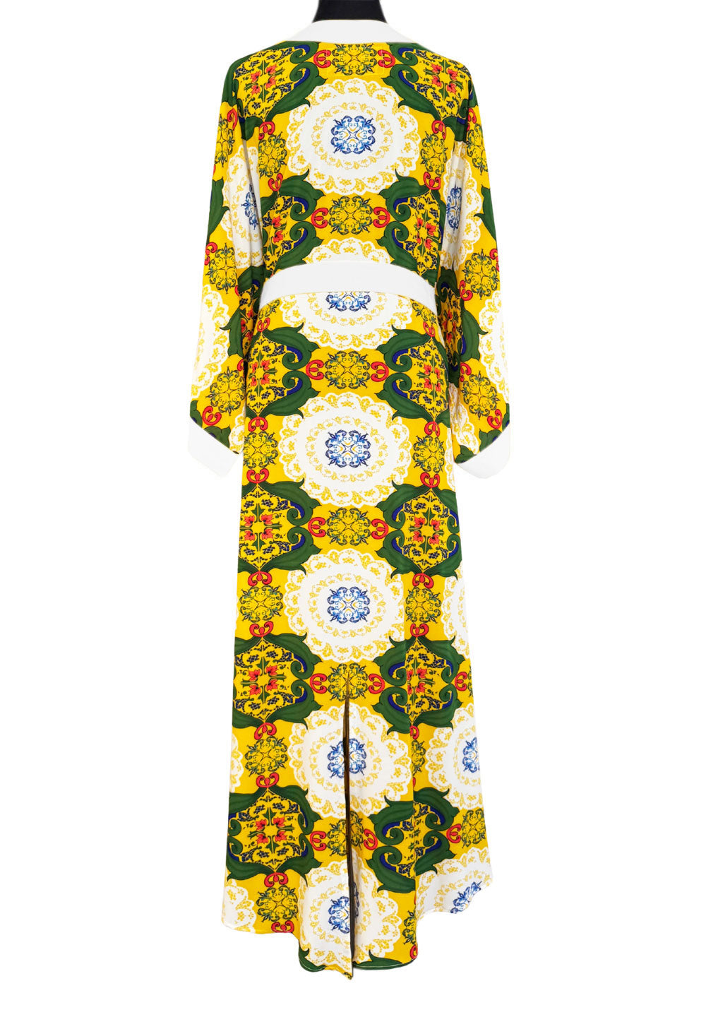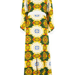 Maxi Split Kaftan - print from vibrant Siciliana collection inspired by colorful Italian majolica, with off-white finish.