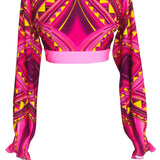 Crop Top - print from Tribal collection, with neon pink finish. A perfect set with our pants.
