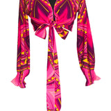 You can tie this cropped blouse in the front or in the back, depending on your mood.