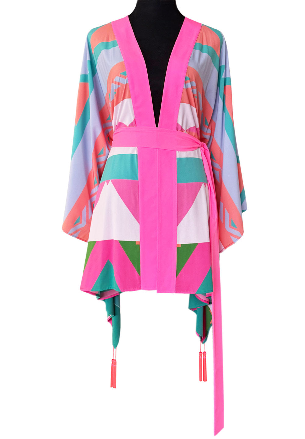 Tribal – Pink Peaks Kimono (Neon Pink) - Short