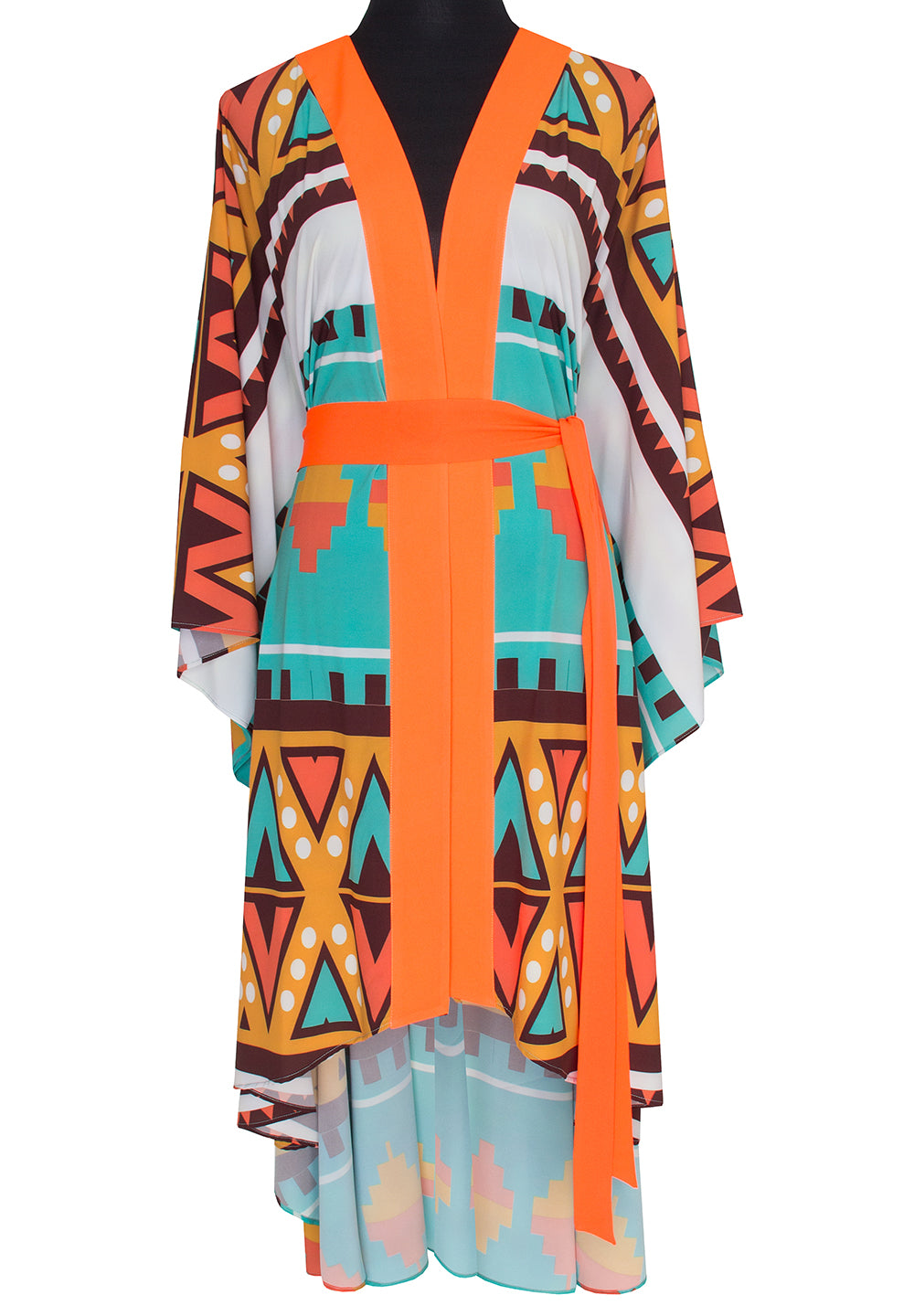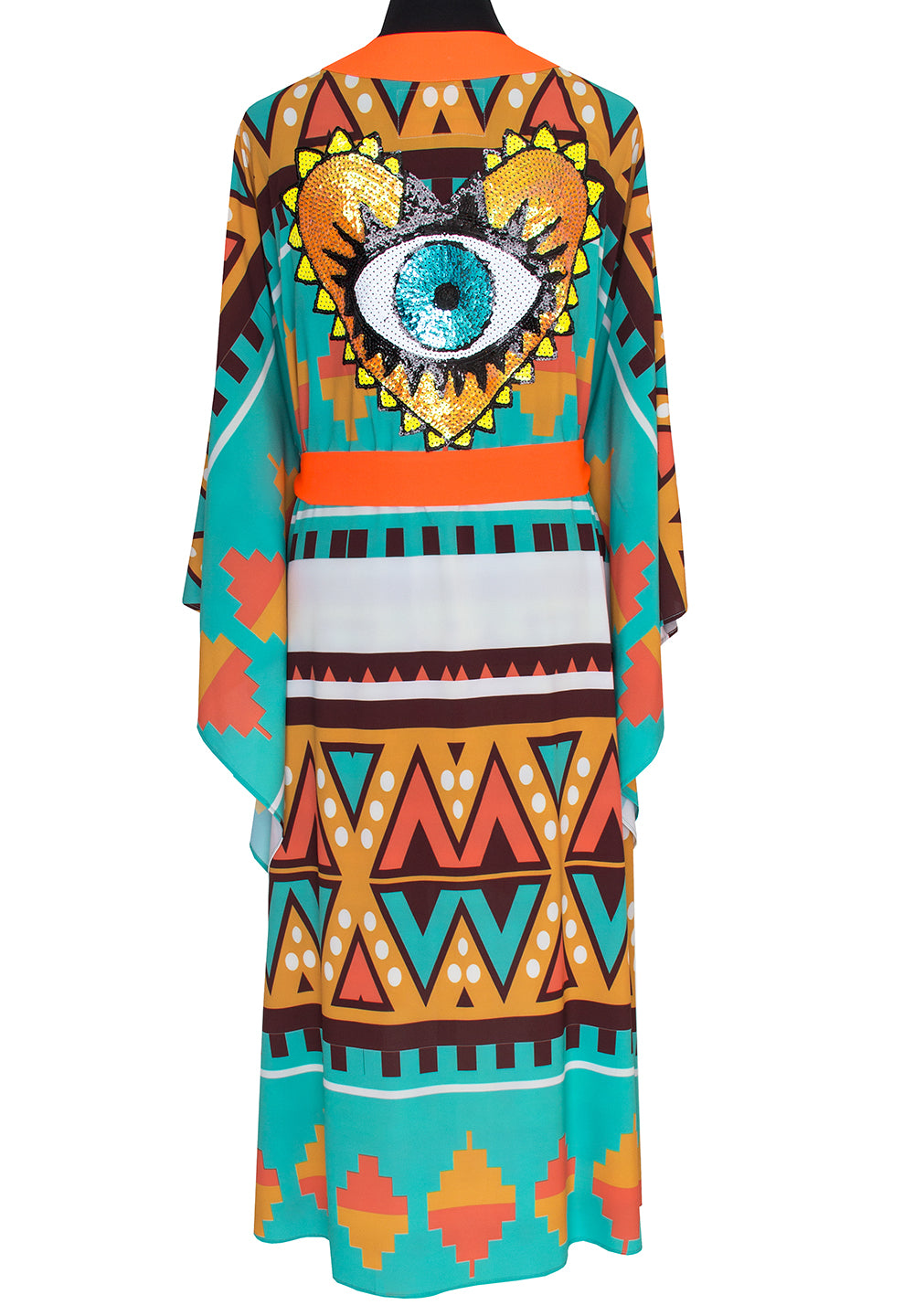 Tulum - Traditional Aztec Kimono Evil Eye (Neon Orange) - Long